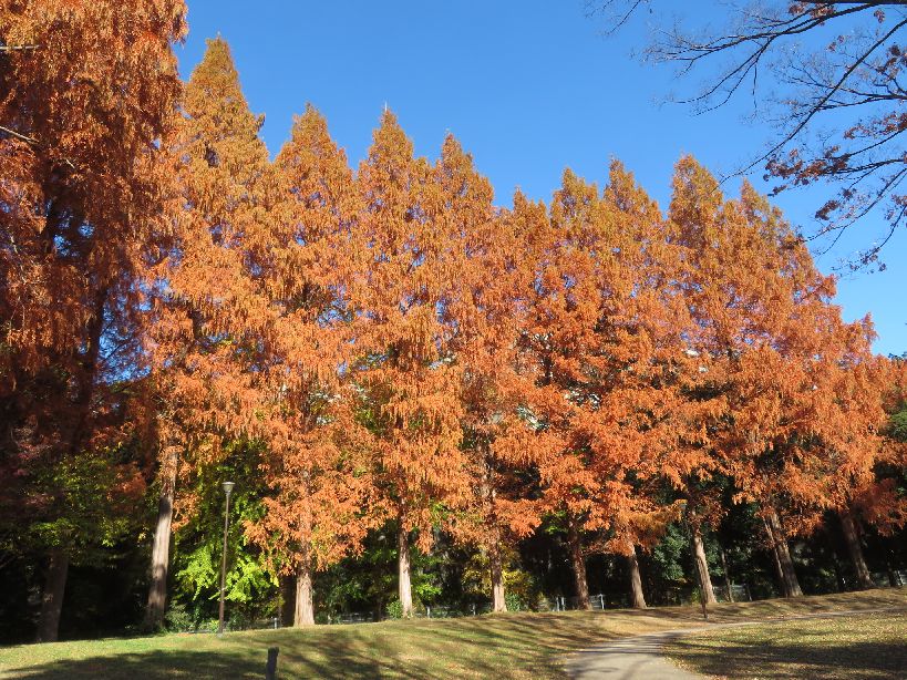 葉は長さ2〜3p、幅1〜2oの線形で、やわらかく先が尖り、2列対生し、秋になると赤茶色に紅葉します。針葉樹ですが落葉します。