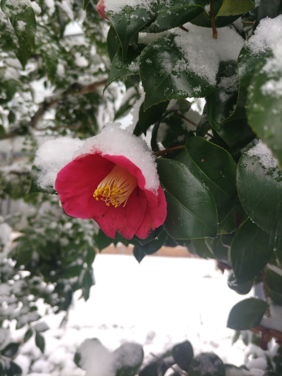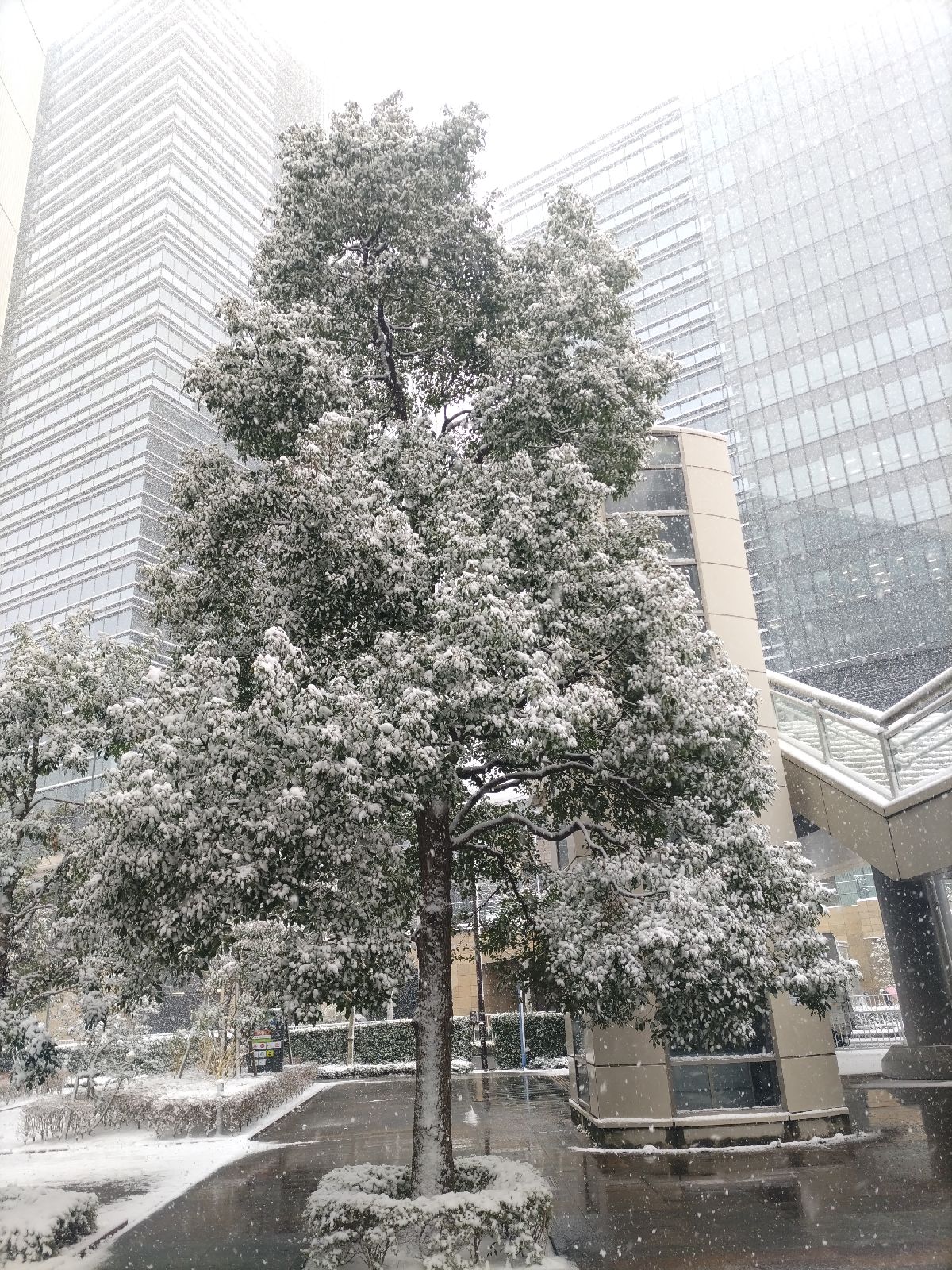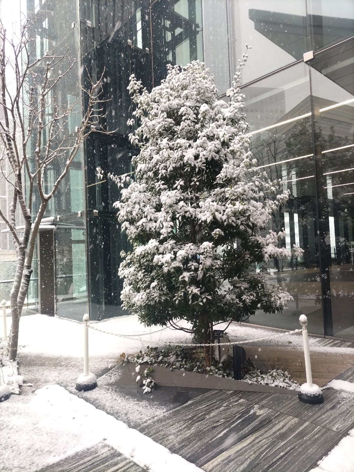 2026年2月8日 珍しく横浜で雪が降りました。 樹木に白花が咲いたようです。 (写真クリックで拡大) |